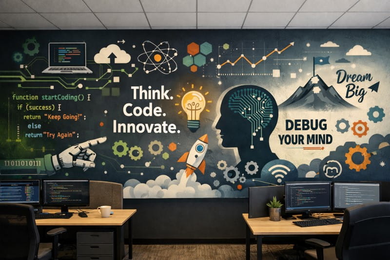 12. Creative Walls & Coding-Themed Graphics