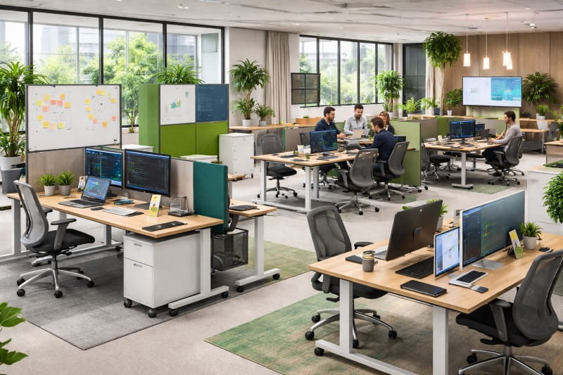 IT teams frequently shift between tasks and projects. Flexible and modular setups allow desks, chairs, and partitions to be moved easily. This is ideal for agile work methods and dynamic team structures.