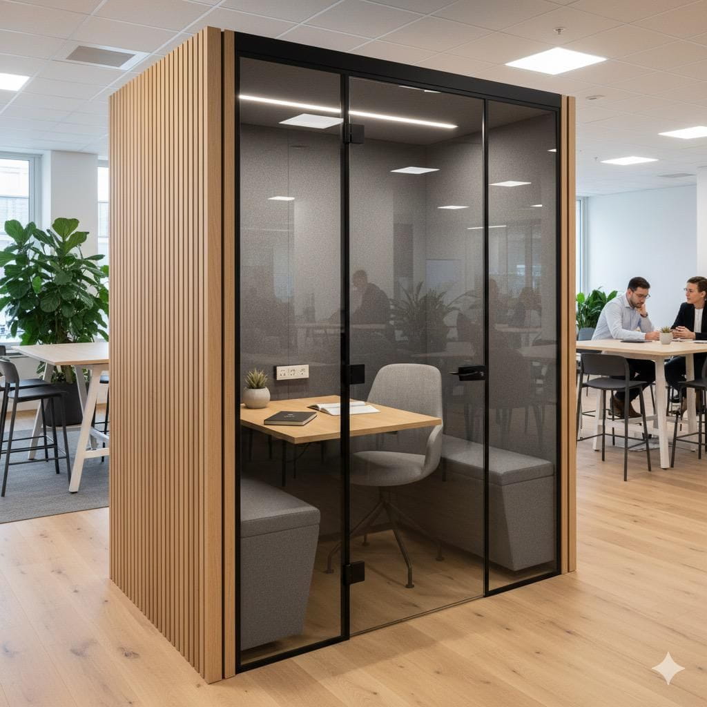 Small pods are perfect for quick calls, one-on-one discussions, or online meetings. These microspaces reduce noise and offer privacy without taking up much floor space.
