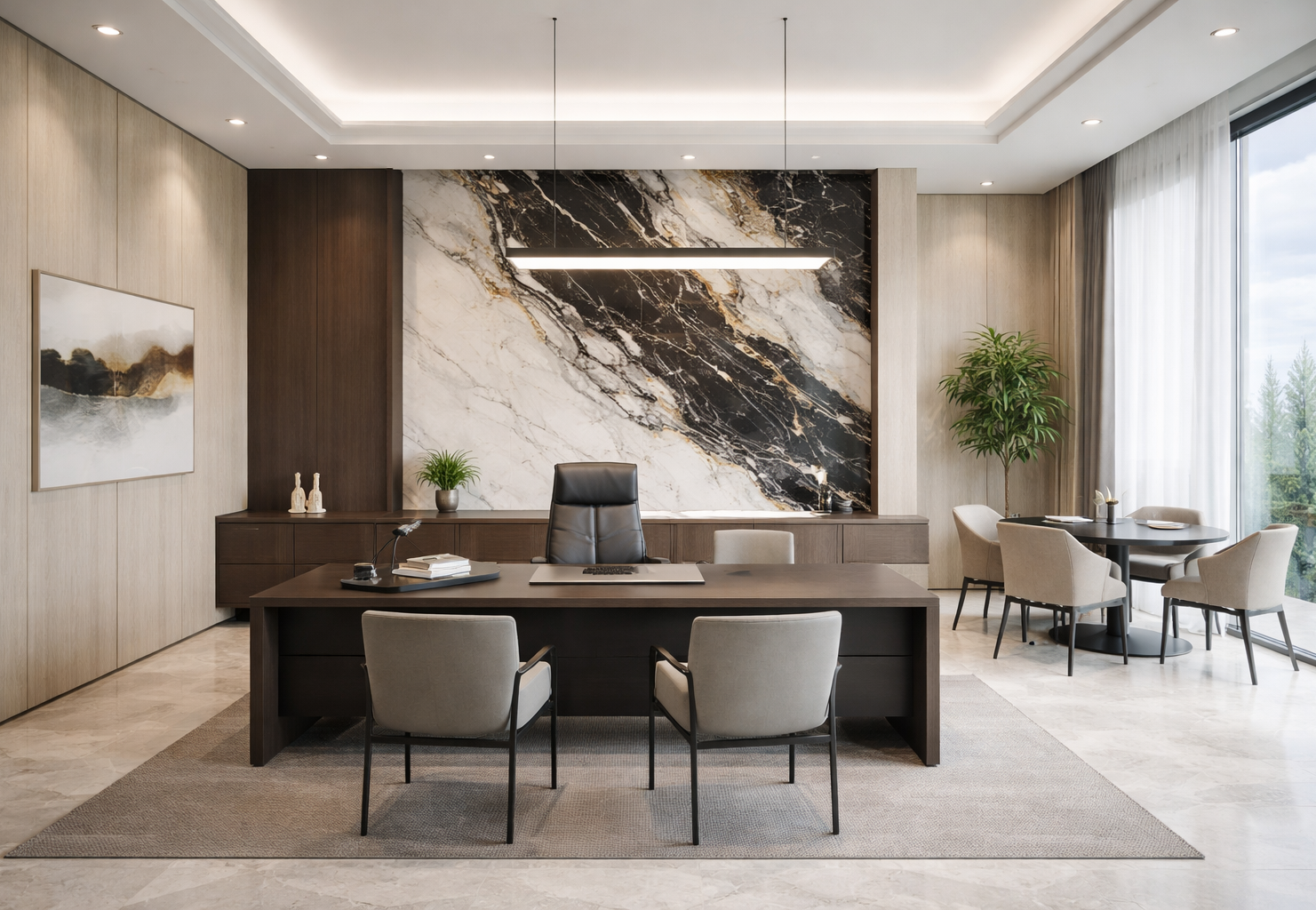 Modern executive cabins focus on elegance, comfort, and simplicity.