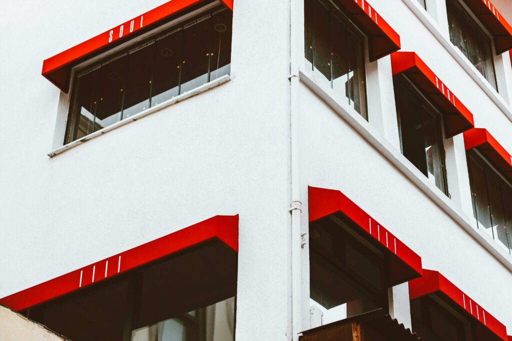 Colours influence mood and brand perception. Neutral tones create a calm, elegant exterior, while accent colours help highlight focal points like entrances or signage.