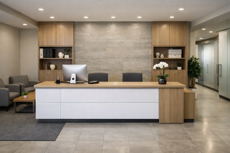 As a dedicated office reception design company, we take pride in delivering exceptional office reception design services that elevate your workspace from the moment someone walks through the door. Our team blends creativity, innovation, and practicality to craft reception areas that reflect your brand, enhance visitor experience, and set the tone for your entire office. From custom reception desks and feature walls to lighting, seating, and layout planning, we ensure every detail works together seamlessly. Partner with us to create a reception space that is welcoming, professional, and truly memorable—one that showcases your company’s identity and leaves a lasting impression on clients and employees alike.