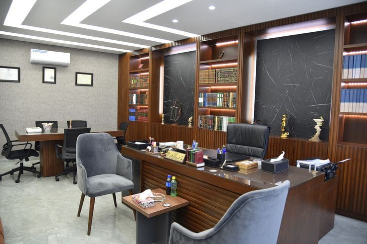 A successful law office interior design starts with clear zoning. Separate areas for reception, consultation rooms, lawyer cabins, meeting rooms, and workstations ensure smooth daily operations. This structured approach is especially important in legal office design, where privacy and focus are critical.