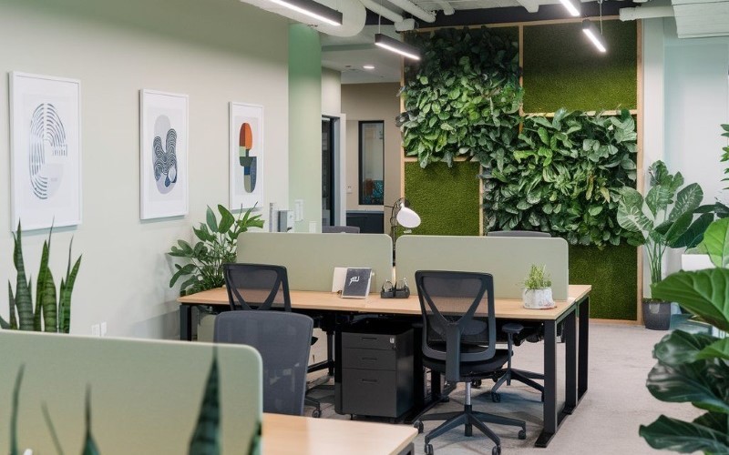Small potted plants or vertical green walls bring life to compact offices without taking up much space.