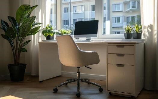 A clean cable setup instantly makes a small office look more spacious and professional. Use under-table trays and cable clips.