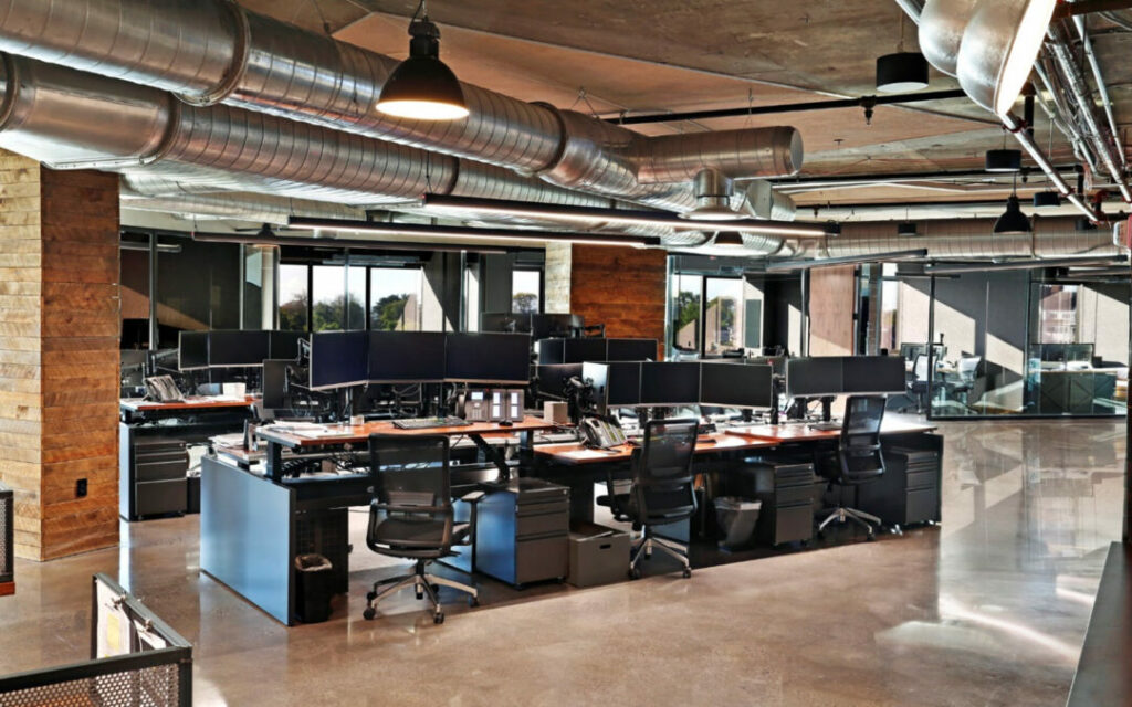 Exposed ceilings, concrete floors, metal frames, and raw finishes are popular in architect office interior design. This style reflects authenticity and aligns well with creative professions.