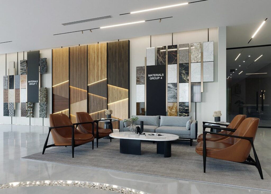 For architects, materials tell stories. Display walls with wood samples, stone finishes, and textile swatches not only inspire teams but also help in client discussions — making design decisions more interactive.