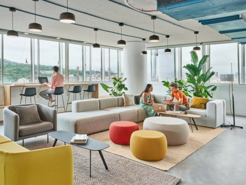- Smart workstations with access to charging ports, AV tools, and collaboration tech.