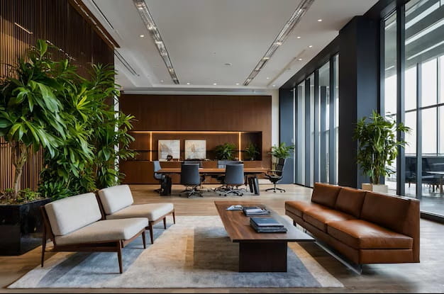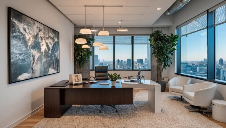 Natural lighting and greenery enhance mood and productivity. Large windows, glass partitions, indoor plants, and natural materials are increasingly used to create calming environments. Biophilic design is one of the fastest-growing Trends in Real Estate Office Interior Design, promoting wellness and focus.