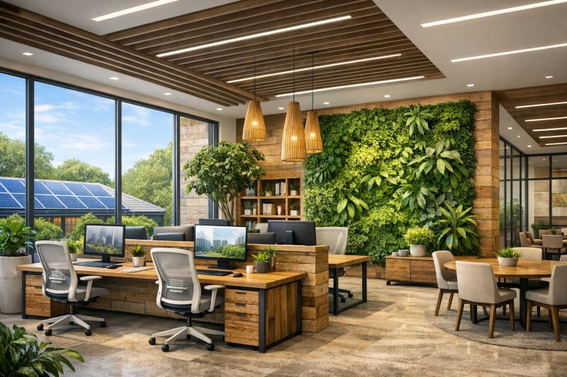 Sustainability is shaping modern office interiors. Energy-efficient lighting, eco-friendly materials, and responsible space planning reduce environmental impact while lowering operational costs. Sustainable solutions are becoming essential Trends in Real Estate Office Interior Design for forward-thinking businesses.