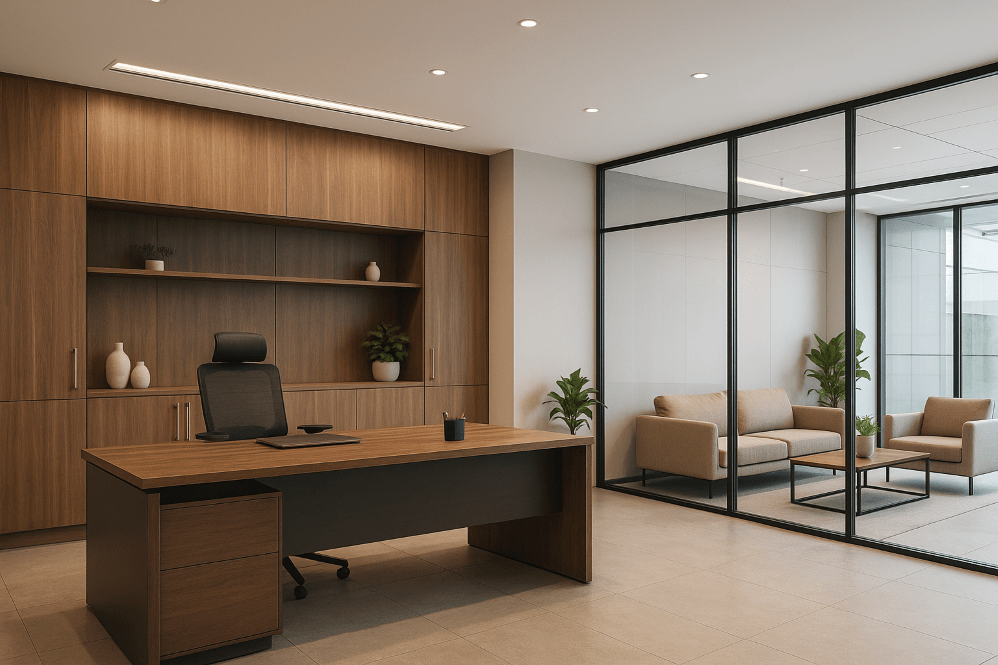 Our approach blends modern design principles with practical functionality, ensuring that every inch of your workspace enhances comfort, workflow, and visual appeal.